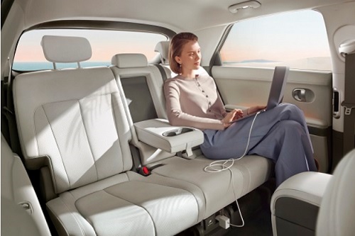 The Universal Island moveable console complements the simple centre fascia with gear selector located behind the steering wheel. The sliding console allows passengers to not only enjoy more flexibility, but also freely enter and exit the cabin on either side when parked in a narrow spot. Second-row passengers also can enjoy center console features, such as cup holders, a 15 W fast wireless phone charger and USB ports. Universal Island truly redefines the centre console, offering greater functionality than a static storage box.