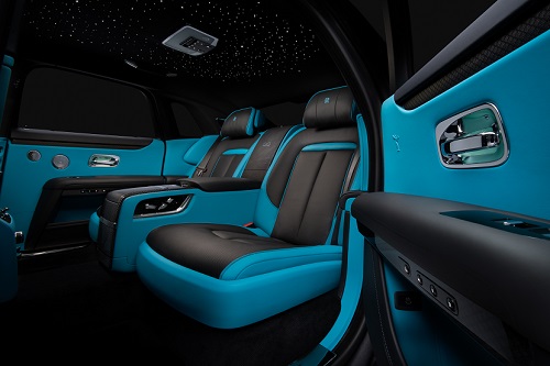 Clients are free to select any of the marque’s 44,000 ‘ready-to-wear’ colours or create their own entirely unique Bespoke hue. However, the overwhelming majority of women and men who requested this darker expression of Ghost have selected the signature Black. To create what is the motor car industry’s darkest black, 100lbs (45kg) of paint is atomised and applied to an electrostatically charged body in white before being oven dried. The motor car then receives two layers of clear coat before being hand-polished by a team of four craftsman to produce the marque’s signature high-gloss piano finish.
