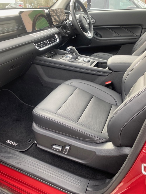 The powered front seat moved through a good range of settings and both leg and headroom was good in them, while their shape and padding was supporting and comfortable and helped absorb the on-road bumps which the suspension struggled to do.